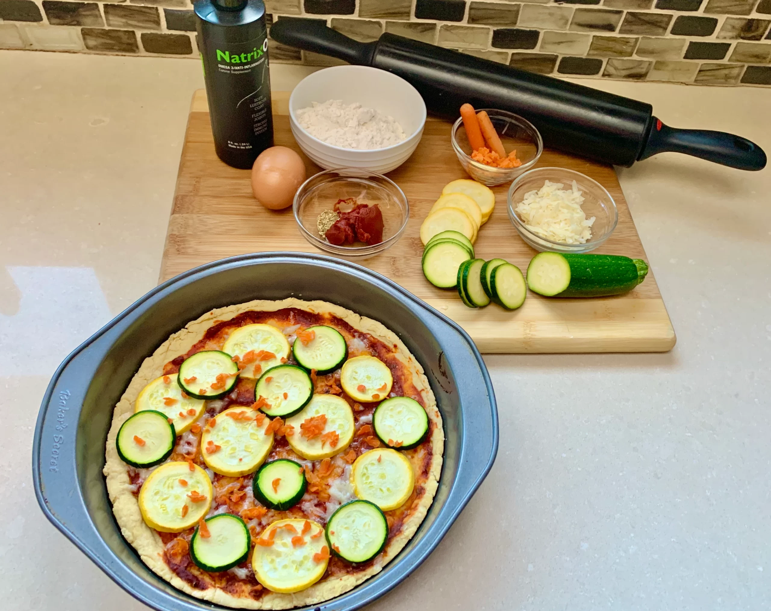 2. Combine all crust ingredients, mix well & form into a large, flattened ball.
